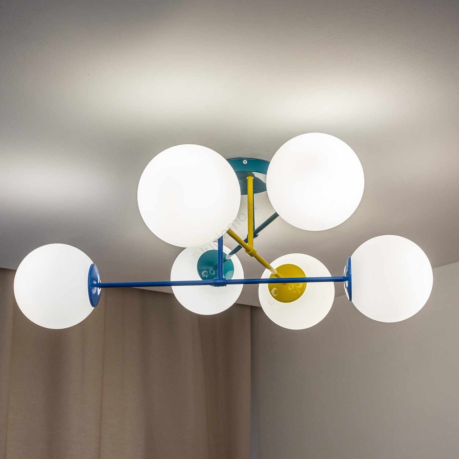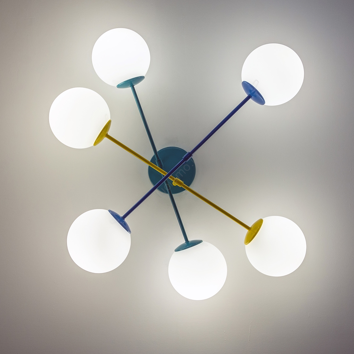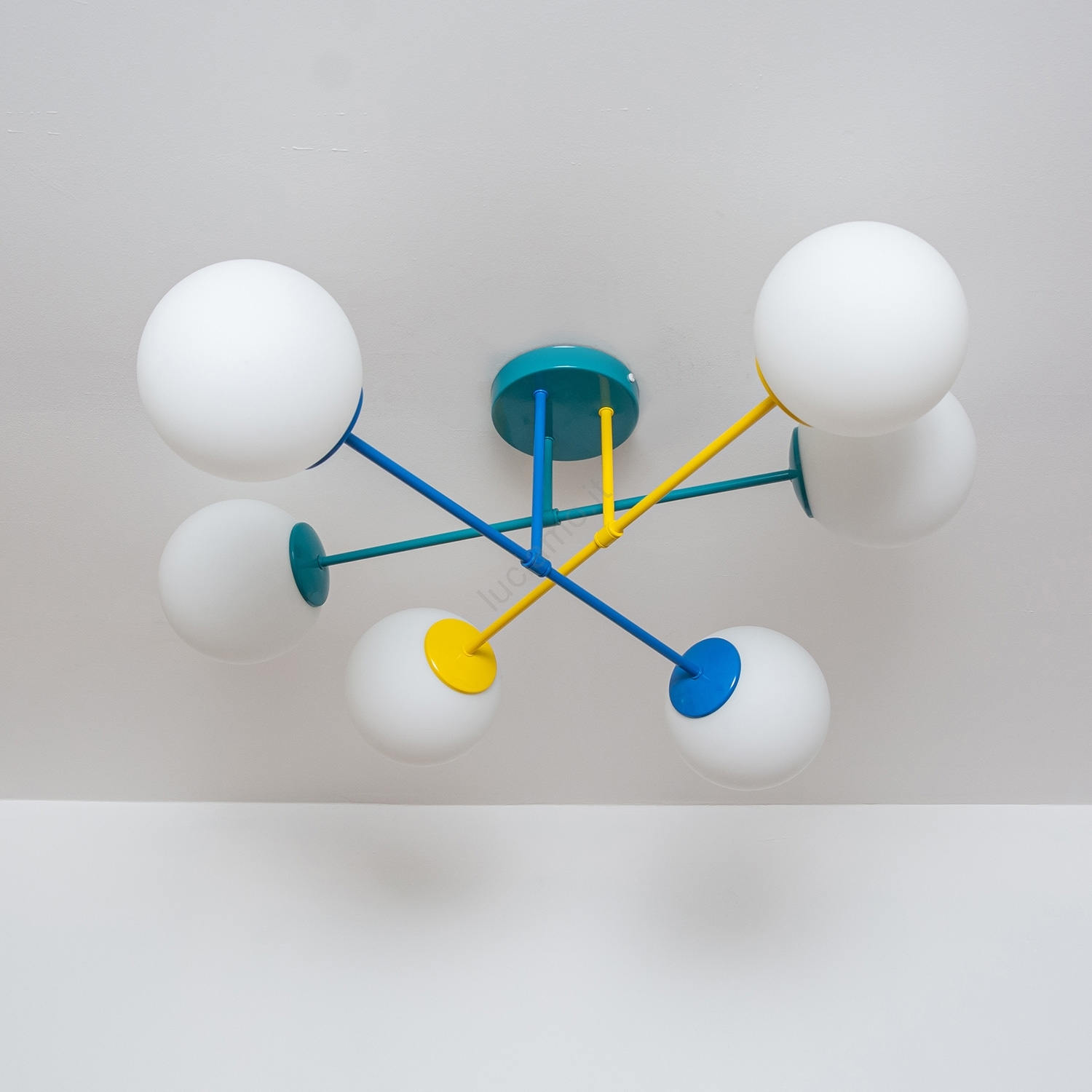 Lampadario a plafone MOON 6xE27/15W/230V turchese/giallo/blu caratterizza un design gradevole e funzionale. Per la lampada è adatta una lampadina con attacco E27. Qui puoi acquistare altre lampadine a prezzi vantaggiosi. Avrai un'aggiunta interessante alla tua casa.