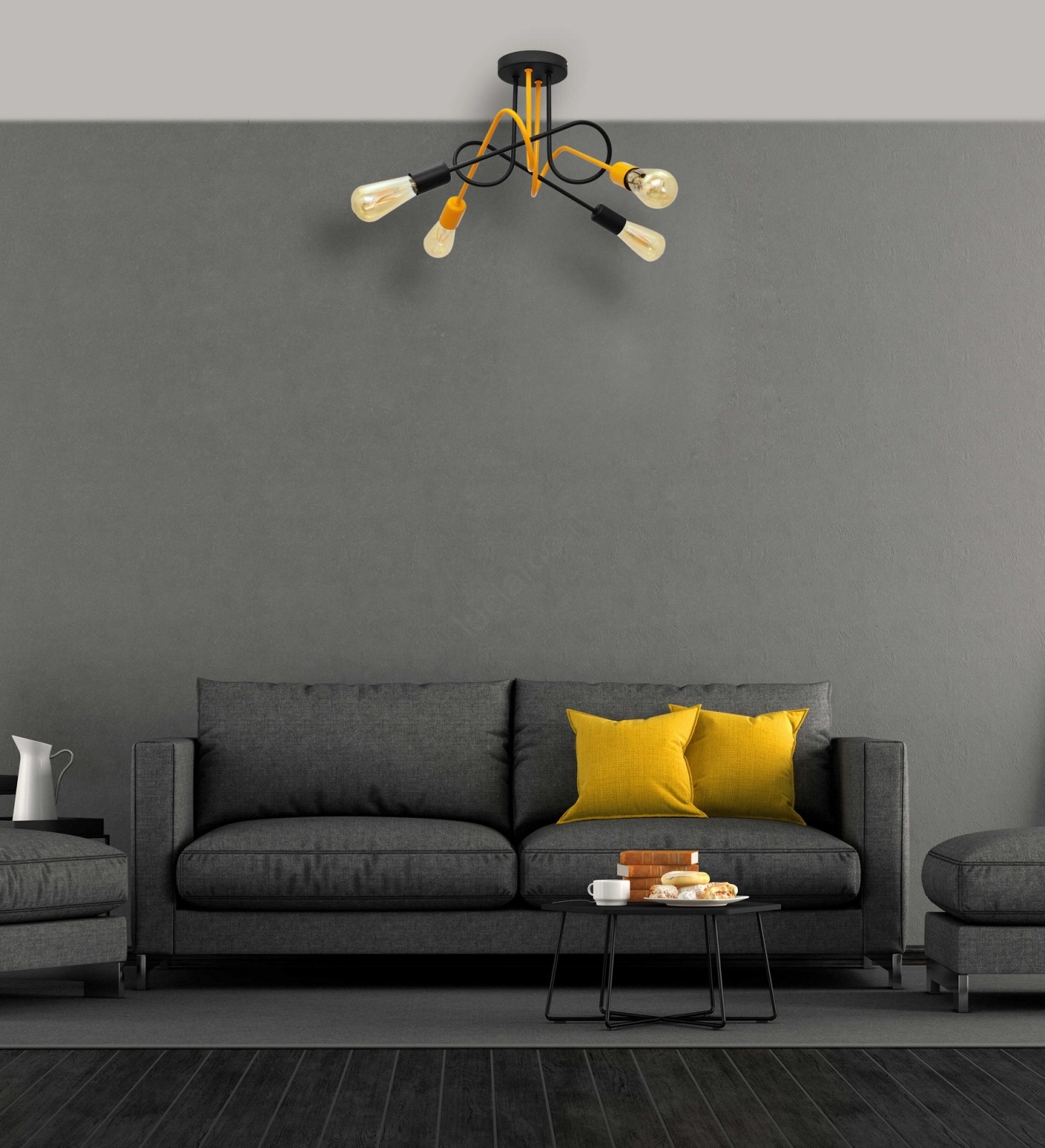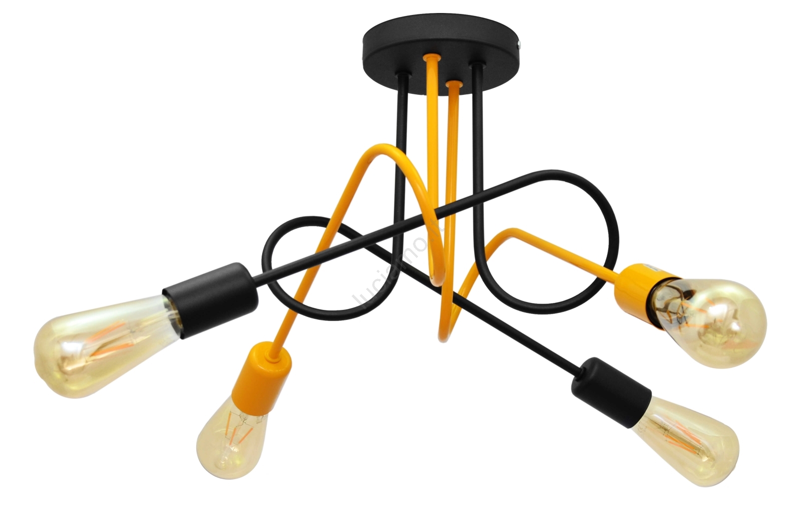 Lampadario a plafone OXFORD 4xE27/15W/230V nero/giallo caratterizza un design gradevole e funzionale. Per la lampada è adatta una lampadina con attacco E27. Qui puoi acquistare altre lampadine a prezzi vantaggiosi. Avrai un'aggiunta interessante alla tua casa.