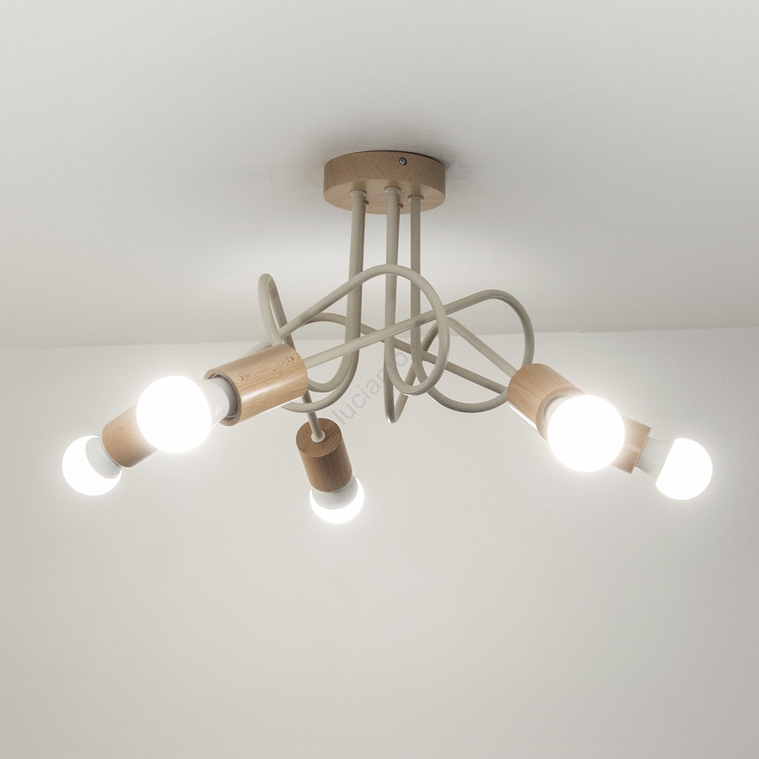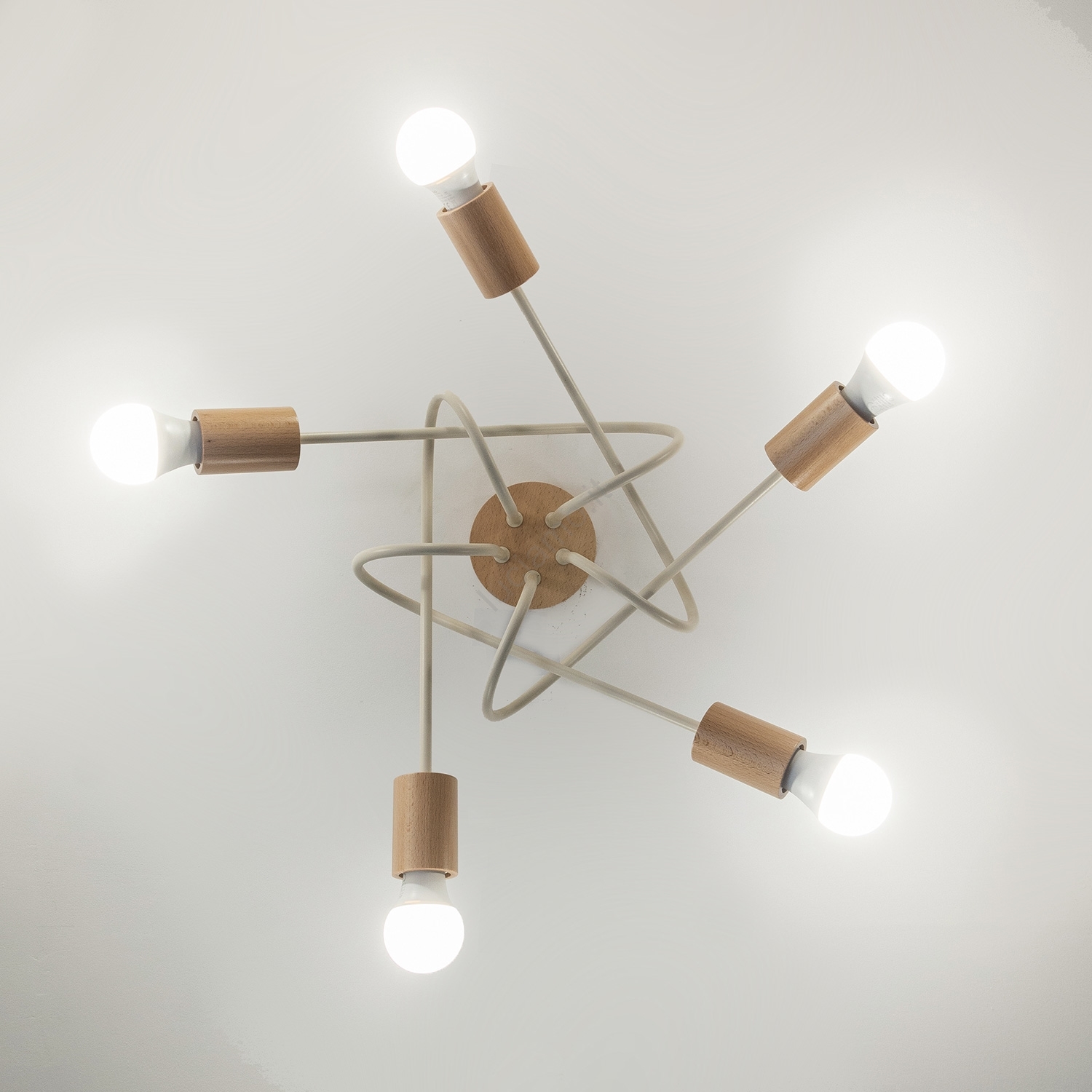 Lampadario a plafone OXFORD 5xE27/15W/230V pino/crema