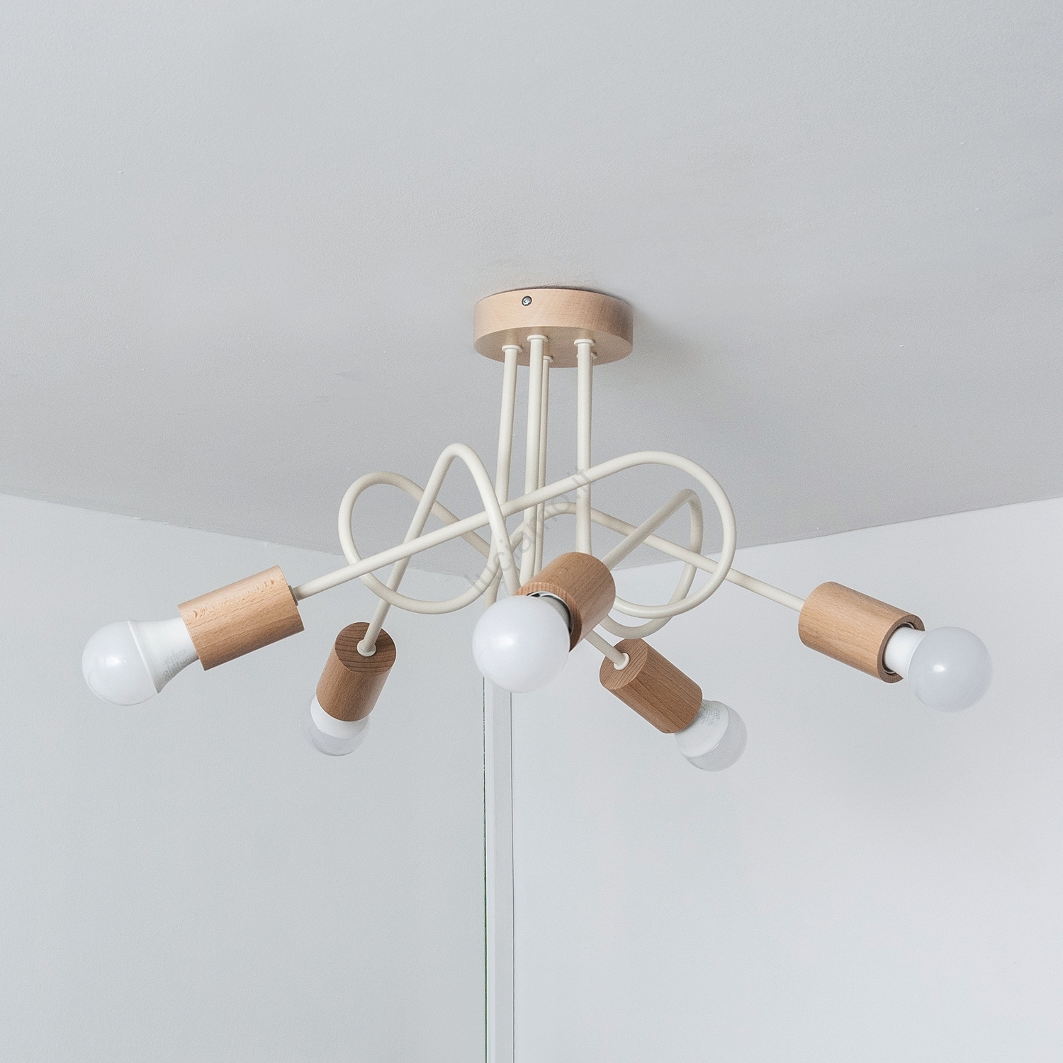 Lampadario a plafone OXFORD 5xE27/15W/230V pino/crema caratterizza un design gradevole e funzionale. Per la lampada è adatta una lampadina con attacco E27. Qui puoi acquistare altre lampadine a prezzi vantaggiosi. Avrai un'aggiunta interessante alla tua casa.