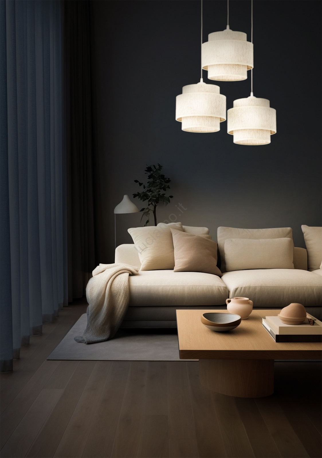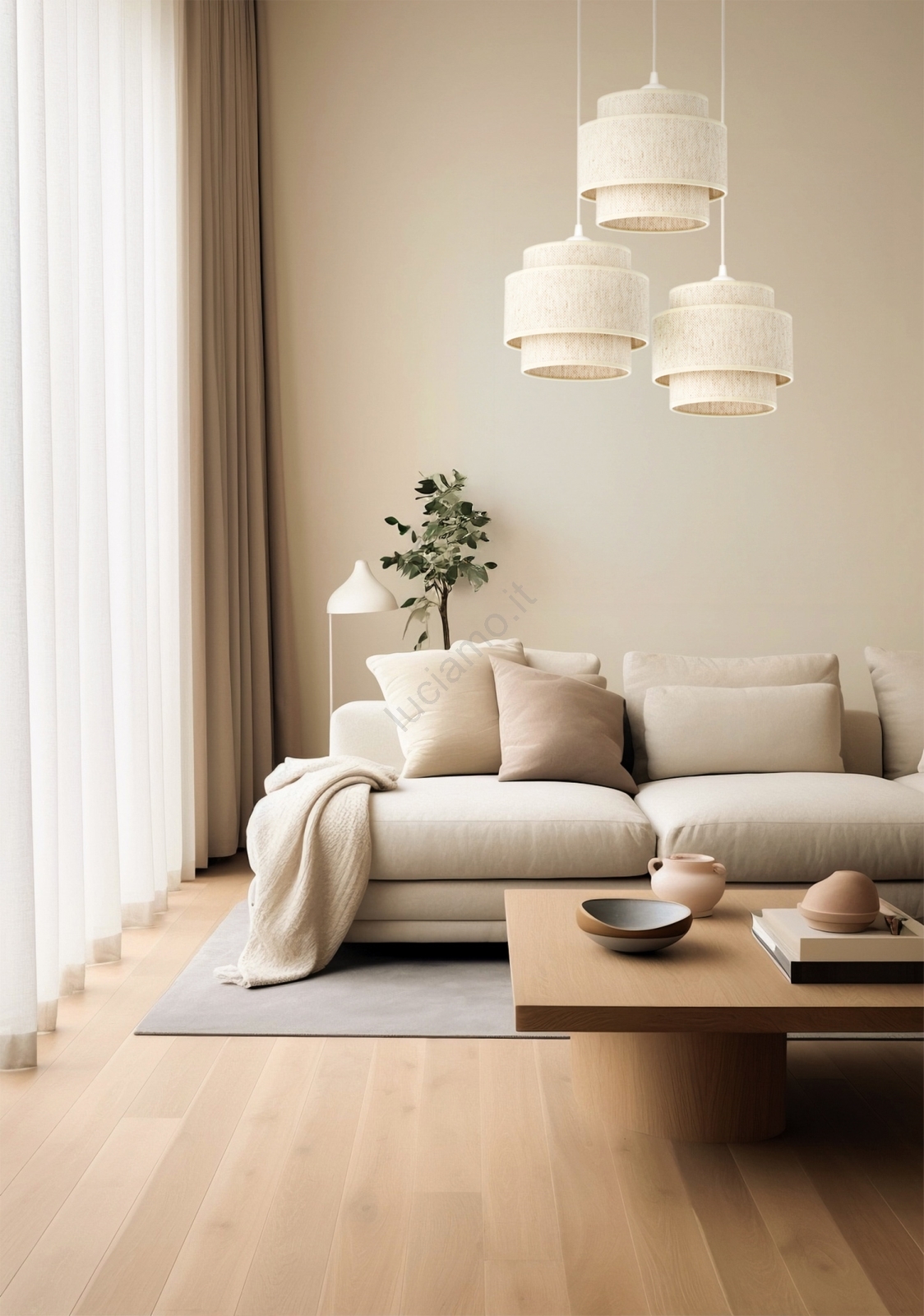 • Lampadario su cavo BOHO 3xE27/60W/230V iuta/crema
