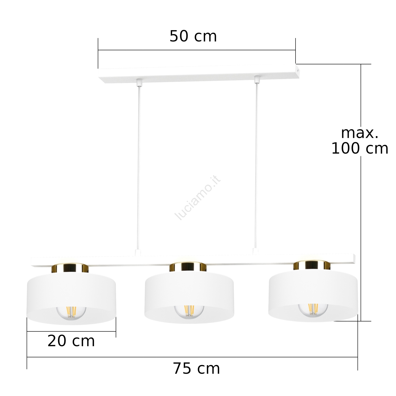 Lampadario a sospensione IGNIA 3xE27/60W/230V bianco/oro caratterizza un design gradevole e funzionale. Per la lampada è adatta una lampadina con attacco E27. Qui puoi acquistare altre lampadine a prezzi vantaggiosi. Avrai un'aggiunta interessante alla tua casa.