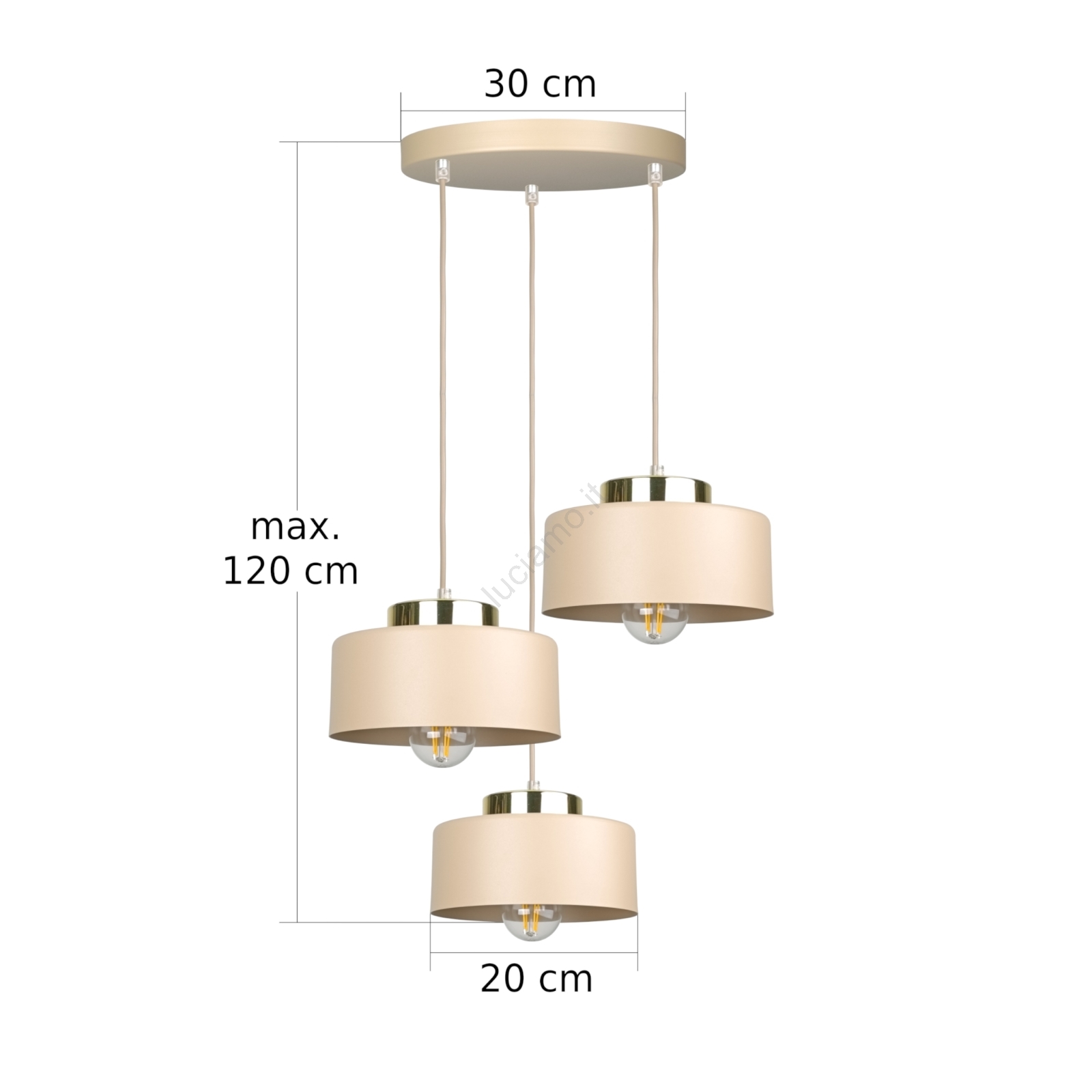 Lampadario a sospensione con cavo IGNIA 3xE27/60W/230V taupe caratterizza un design gradevole e funzionale. Per la lampada è adatta una lampadina con attacco E27. Qui puoi acquistare altre lampadine a prezzi vantaggiosi. Avrai un'aggiunta interessante alla tua casa.