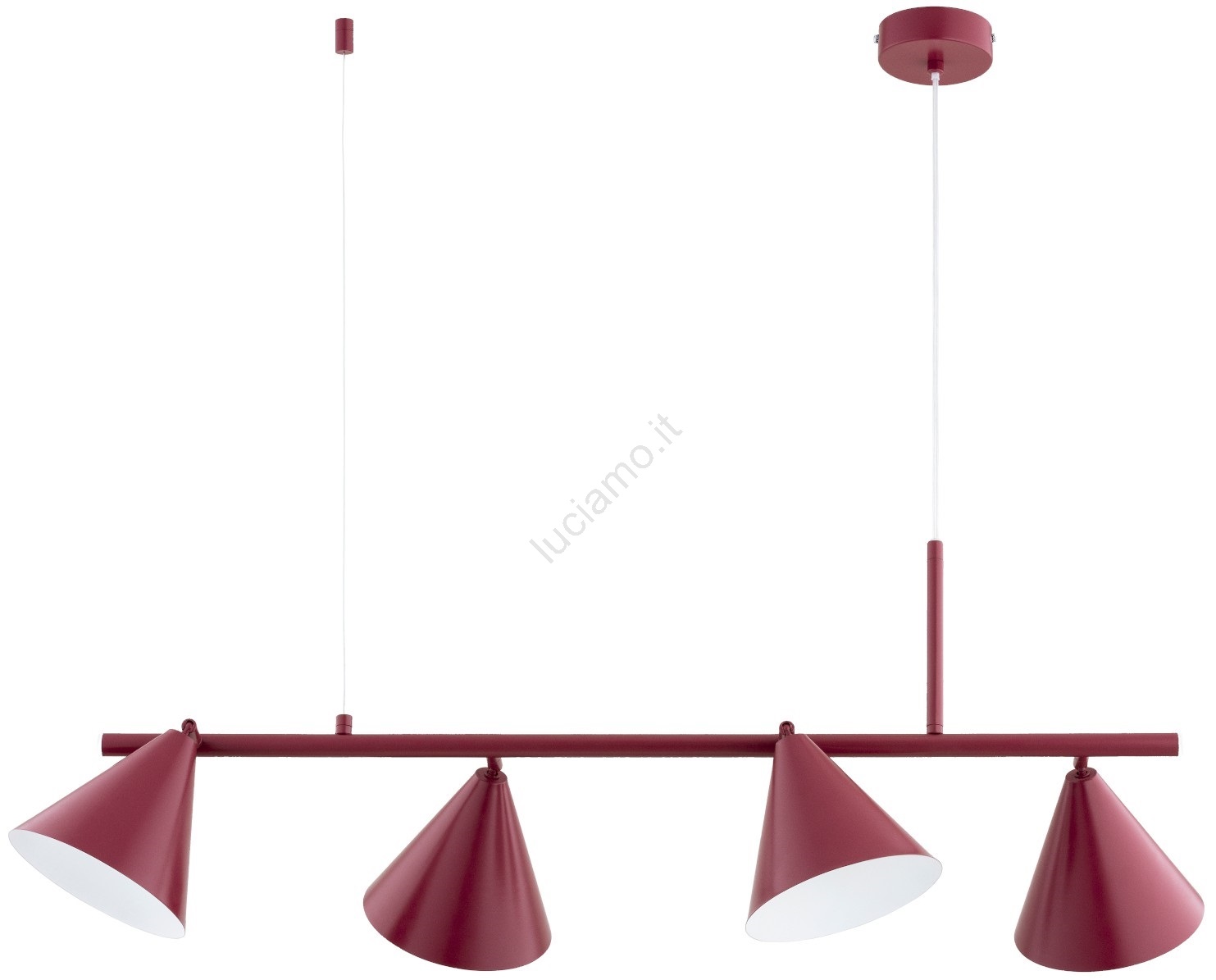 Lampadario a sospensione con cavo ZELTA 4xE27/15W/230V, rosso caratterizza un design gradevole e funzionale. Per la lampada è adatta una lampadina con attacco E27. Qui puoi acquistare altre lampadine a prezzi vantaggiosi. Avrai un'aggiunta interessante alla tua casa.