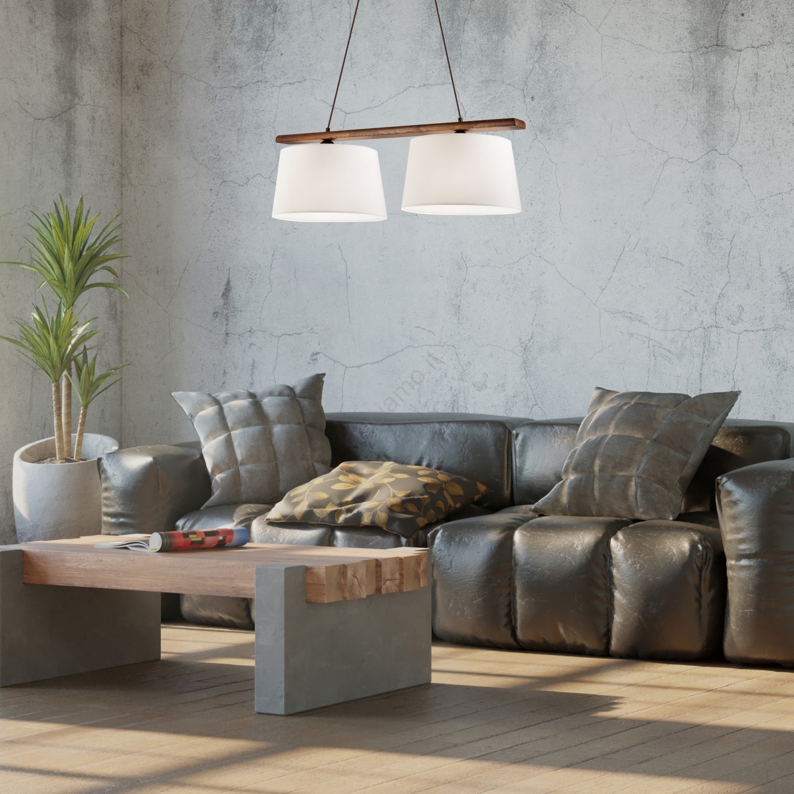 • Lampadario sospeso a cavo AIDA 2xE27/60W/230V, Ø 35 cm, rovere/noce