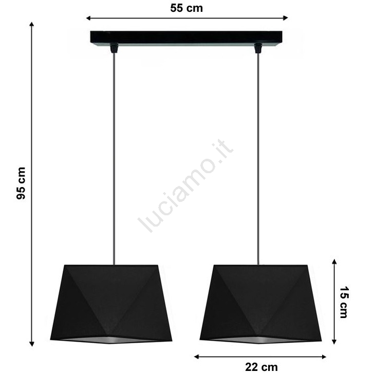 Lampadario a sospensione con filo DIAMENT 2xE27/60W/230V nero caratterizza un design gradevole e funzionale. Per la lampada è adatta una lampadina con attacco E27. Qui puoi acquistare altre lampadine a prezzi vantaggiosi. Avrai un'aggiunta interessante alla tua casa.