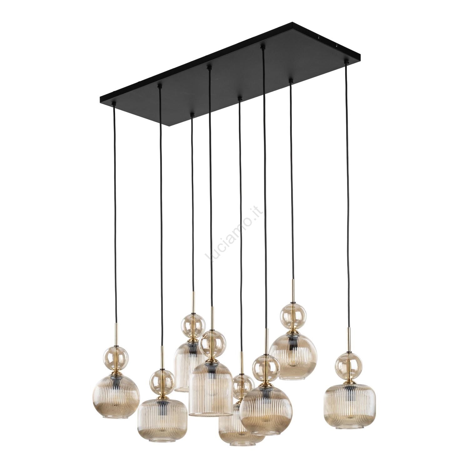 Lampada a sospensione SOPHIA con cavo 8xE14/10W/230V Nero/Beige fumé