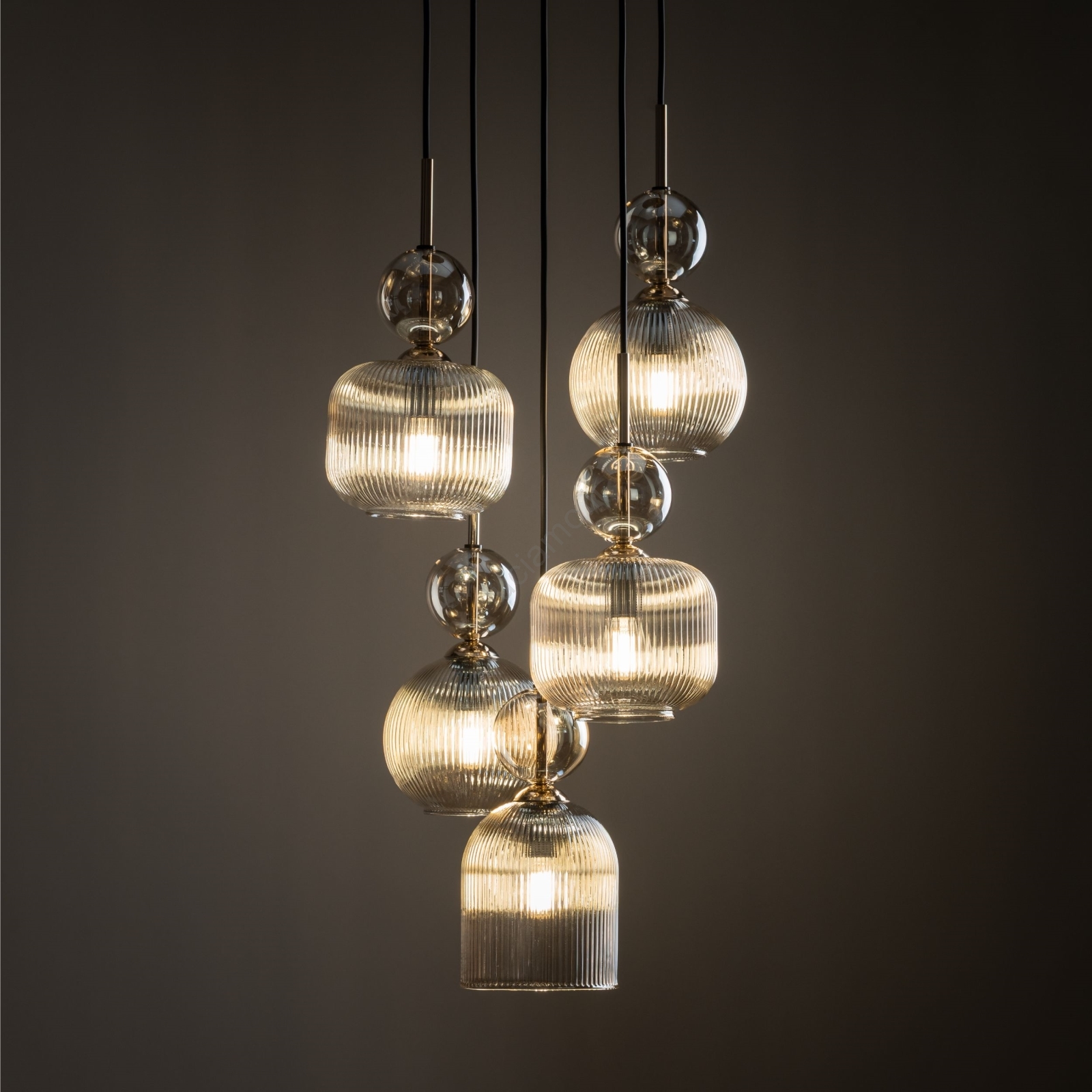 • Lampadario a cavo SOPHIA 5xE14/10W/230V nero/verde/beige fumé