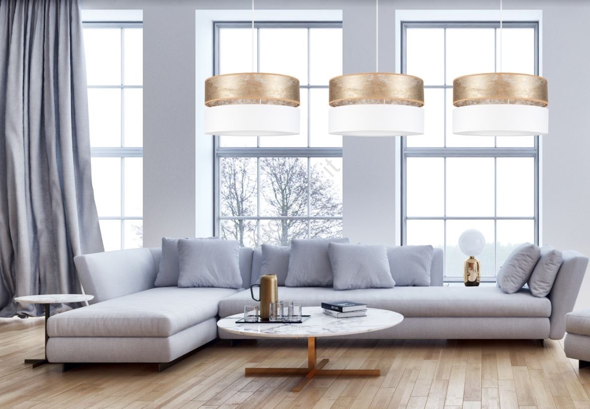 Lampadario su filo LIMA 1xE27/60W/230V bianco/dorato