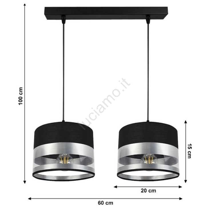 Lampadario su filo MILO 2xE27/60W/230V argento/nero caratterizza un design gradevole e funzionale. Per la lampada è adatta una lampadina con attacco E27. Qui puoi acquistare altre lampadine a prezzi vantaggiosi. Avrai un'aggiunta interessante alla tua casa.
