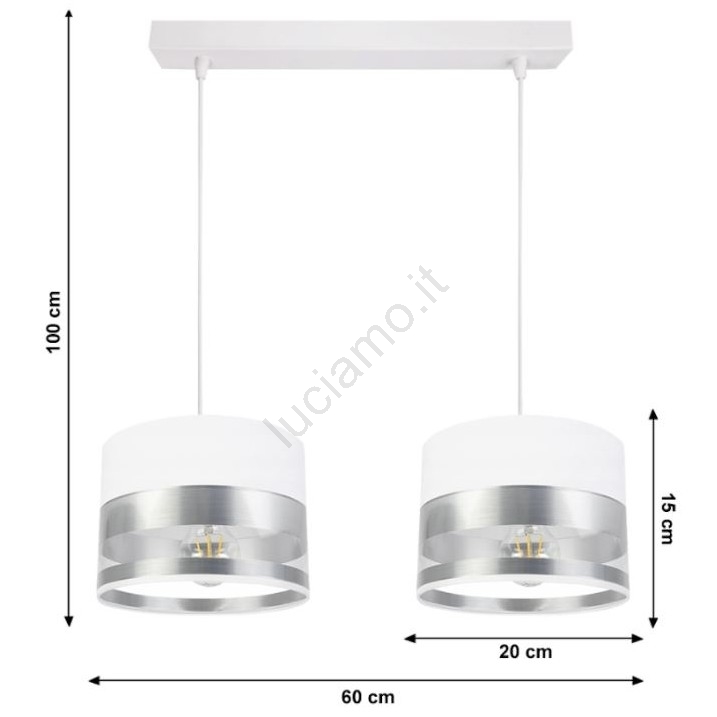 Lampadario su filo MILO 2xE27/60W/230V argento caratterizza un design gradevole e funzionale. Per la lampada è adatta una lampadina con attacco E27. Qui puoi acquistare altre lampadine a prezzi vantaggiosi. Avrai un'aggiunta interessante alla tua casa.