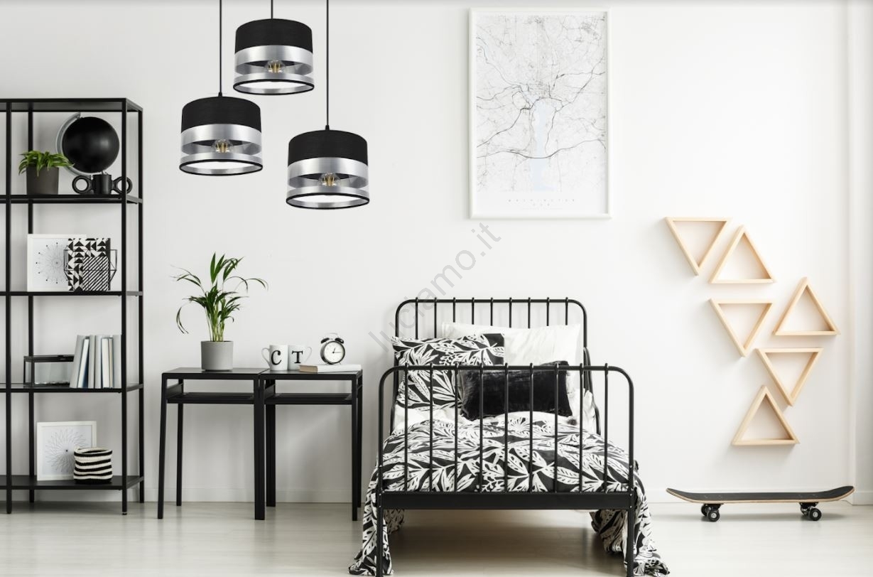• Lampadario su filo MILO 3xE27/60W/230V argento/nero