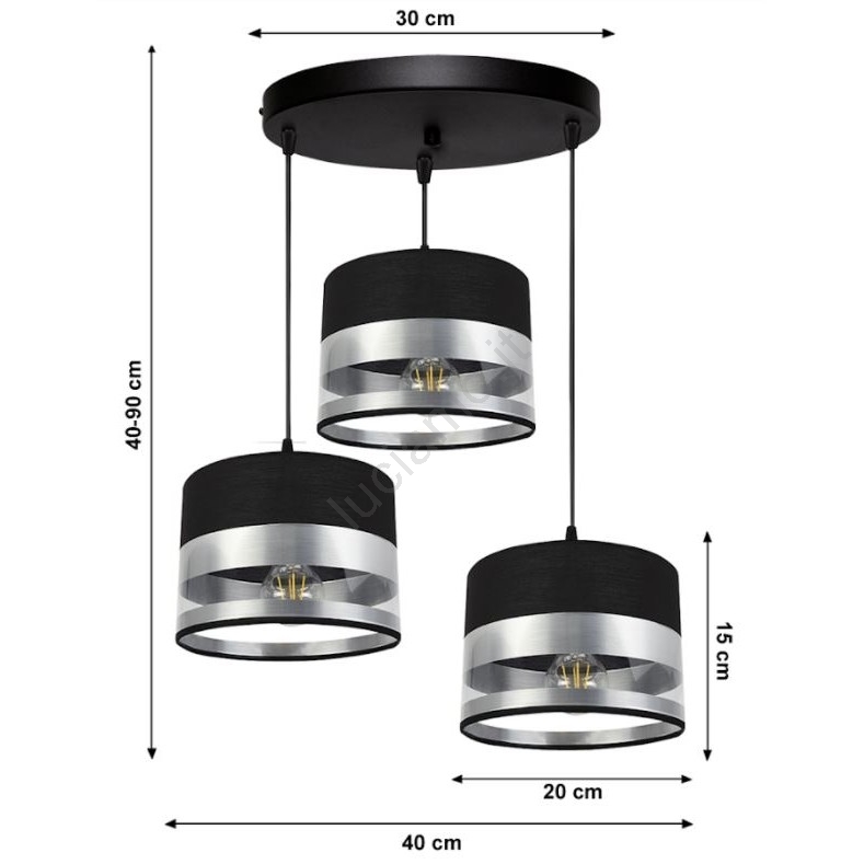 Lampadario su filo MILO 3xE27/60W/230V argento/nero
