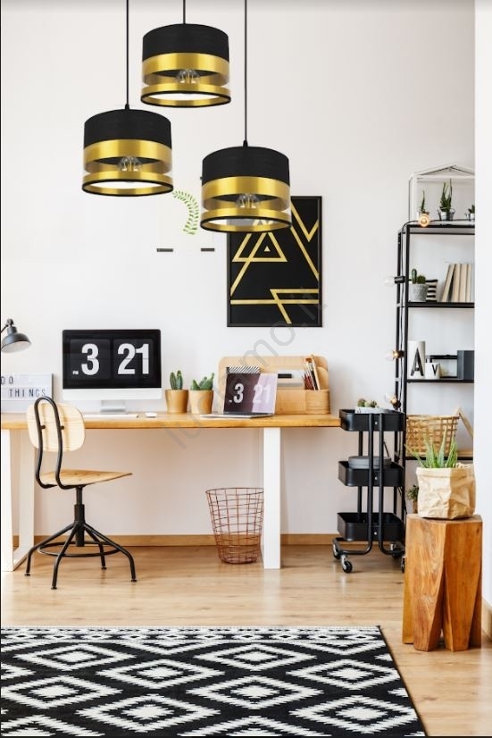 Lampadario su filo MILO 3xE27/60W/230V dorato/nero caratterizza un design gradevole e funzionale. Per la lampada è adatta una lampadina con attacco E27. Qui puoi acquistare altre lampadine a prezzi vantaggiosi. Avrai un'aggiunta interessante alla tua casa.