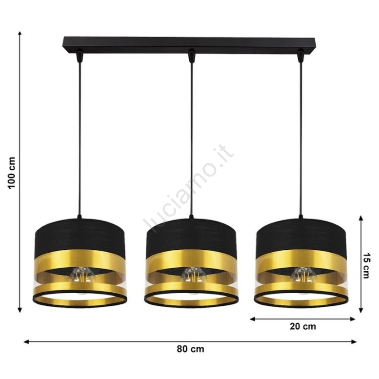 Lampadario su filo MILO 3xE27/60W/230V dorato/nero caratterizza un design gradevole e funzionale. Per la lampada è adatta una lampadina con attacco E27. Qui puoi acquistare altre lampadine a prezzi vantaggiosi. Avrai un'aggiunta interessante alla tua casa.