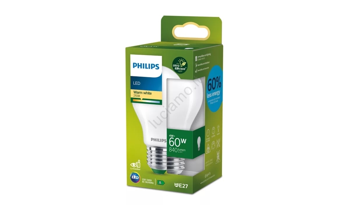 • Lampadina LED ULTRAEFFICIENT Philips A60 E27/4W/230V 2700K