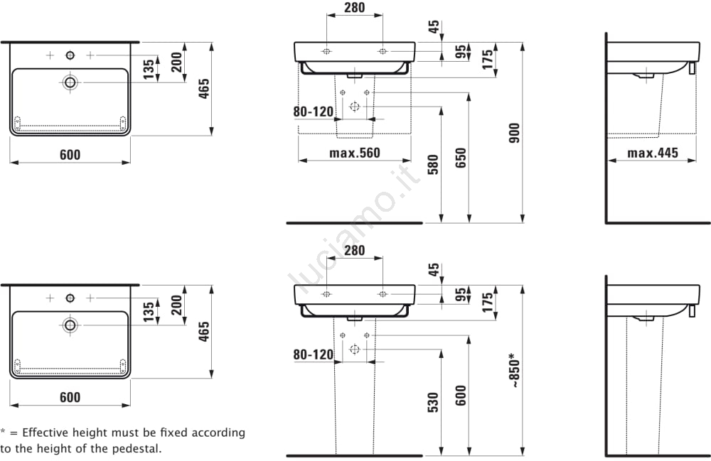 • Il lavabo è adatto per l'installazione su piano o come lavabo sospeso a parete.