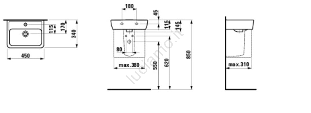 • Il lavabo è pensato per l'installazione su piano o come lavabo sospeso a parete.