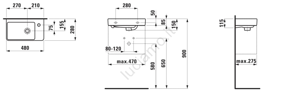 • Progettato per il montaggio a parete come lavabo sospeso.