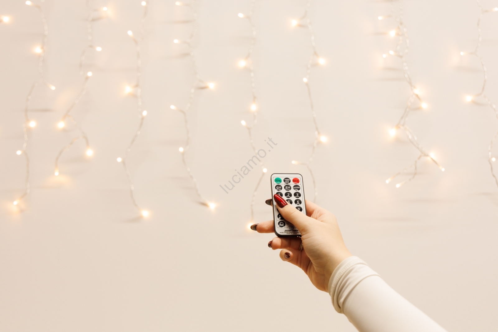 LED dimmerabile da esterno tenda luminosa CURTAIN 360xLED/8,4W/230V 2x2 m IP44 bianco caldo + telecomando