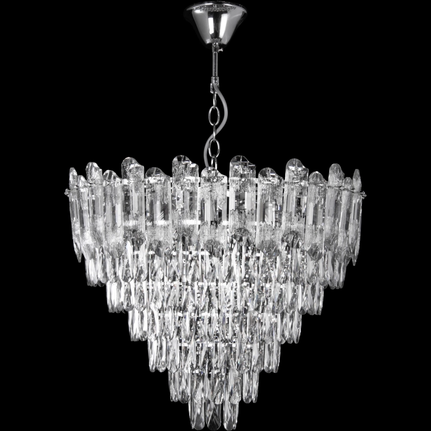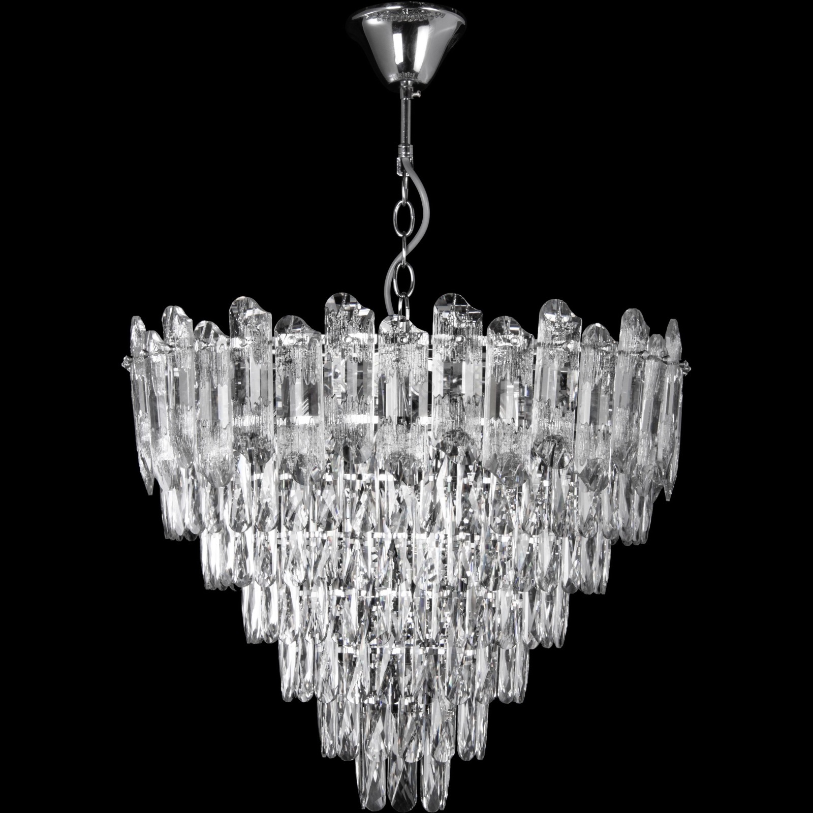 Lampadario LED a catena con 11 portalampade E27 (max 60W/230V) + 7 LED da 6W, Ø 60 cm, cromo lucido