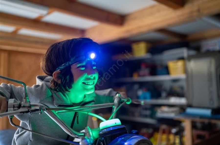 • Disponibile in quattro colori di luce – bianco, rosso, verde e blu – e dotata di funzione lampeggio, perfetta per animare feste per bambini o giochi serali.