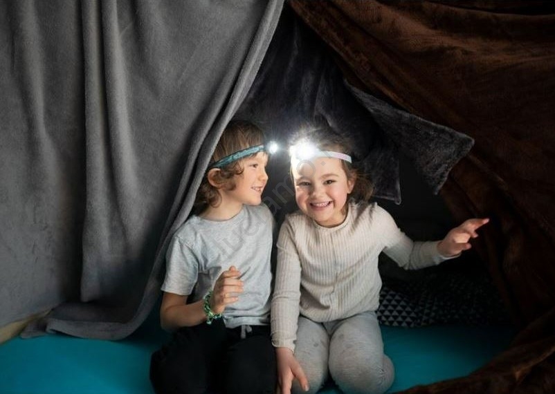 • La lampada frontale per bambini è leggera e facile da usare.