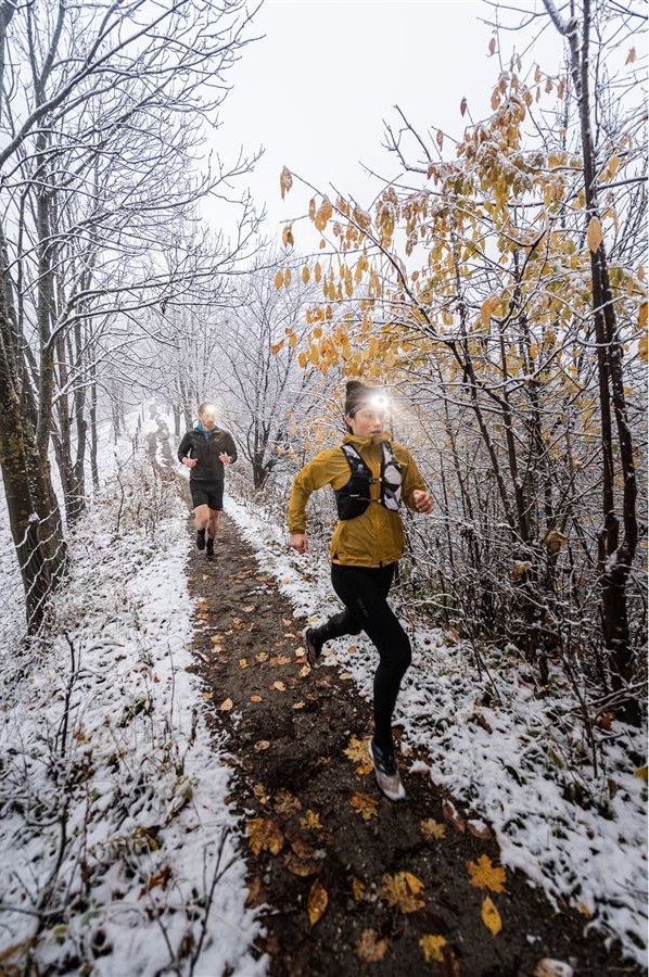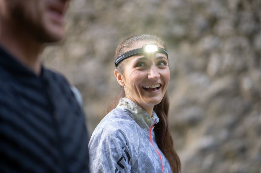 • Lampada frontale potente e leggera, progettata appositamente per runner urbani e trail che necessitano di un'illuminazione intensa e uniforme durante gli allenamenti notturni.