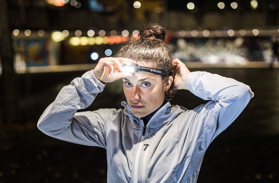 • Lampada frontale potente e leggera, progettata specificamente per corridori urbani e trail che necessitano di un'illuminazione intensa e uniforme per gli allenamenti notturni.