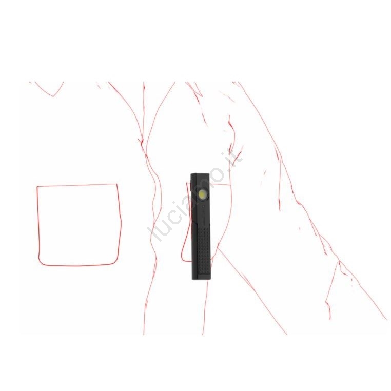 • La luce spot ha una potenza di 100 lumen con un'autonomia di 2 ore.