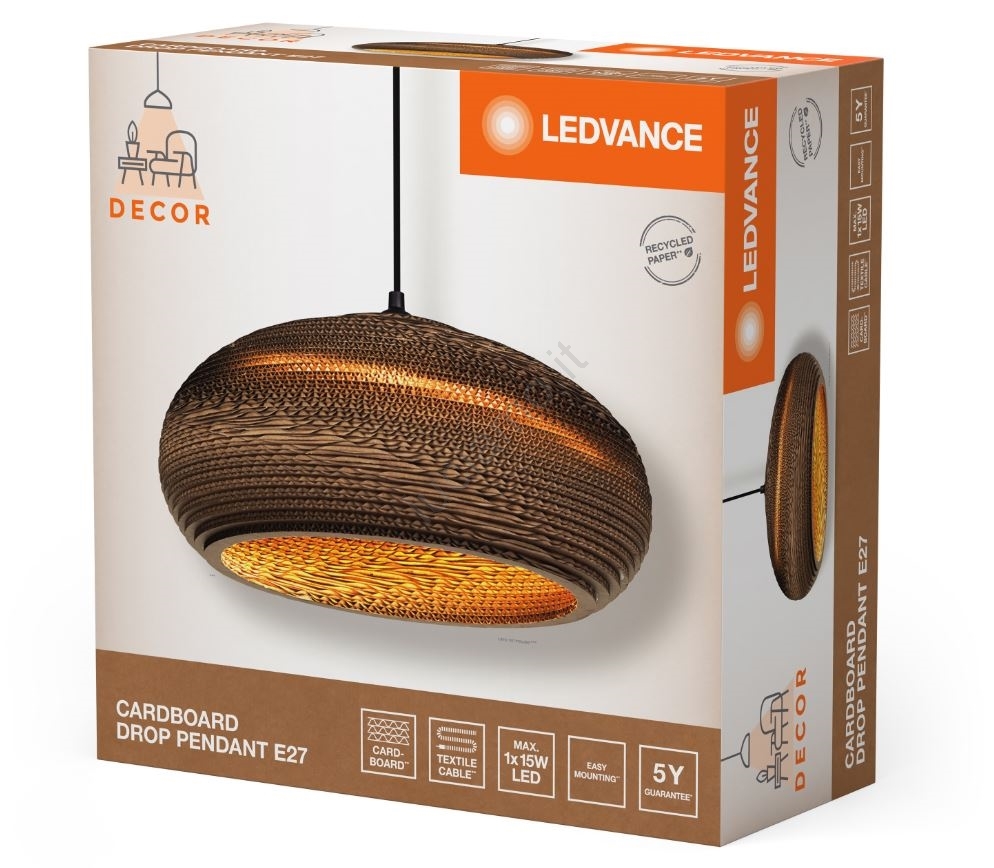 Ledvance - Lampadario a sospensione con filo DECOR CARDBOARD 1xE27/15W/230V diametro 40 cm caratterizza un design gradevole e funzionale. Per la lampada è adatta una lampadina con attacco E27. Qui puoi acquistare altre lampadine a prezzi vantaggiosi. Avrai un'aggiunta interessante alla tua casa.