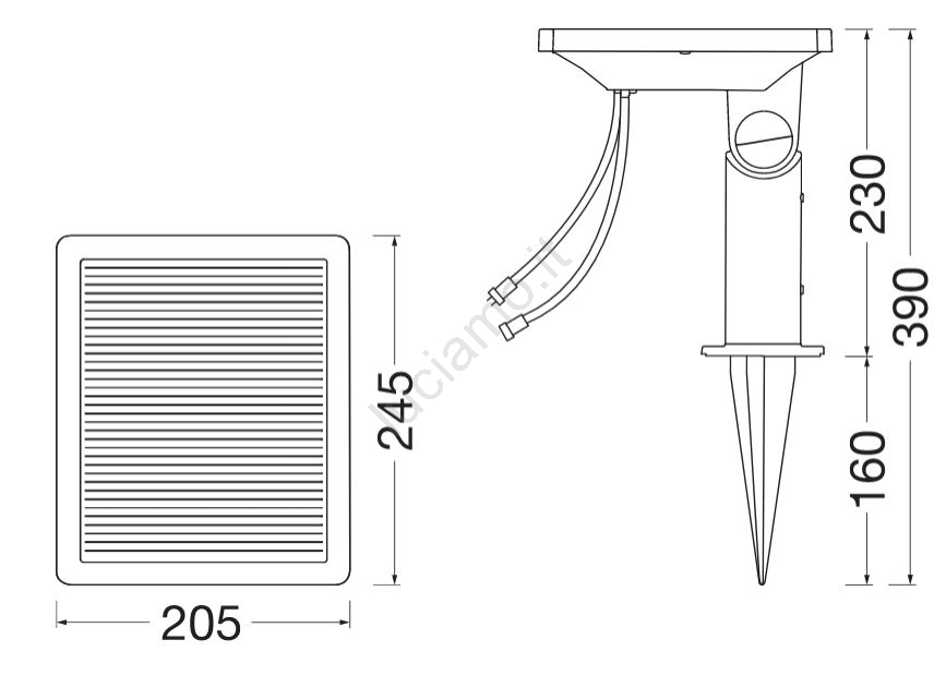 • Dopo il collegamento alla rete elettrica, la lampada si commuta automaticamente sulla corrente di rete non appena la batteria del pannello solare si scarica.