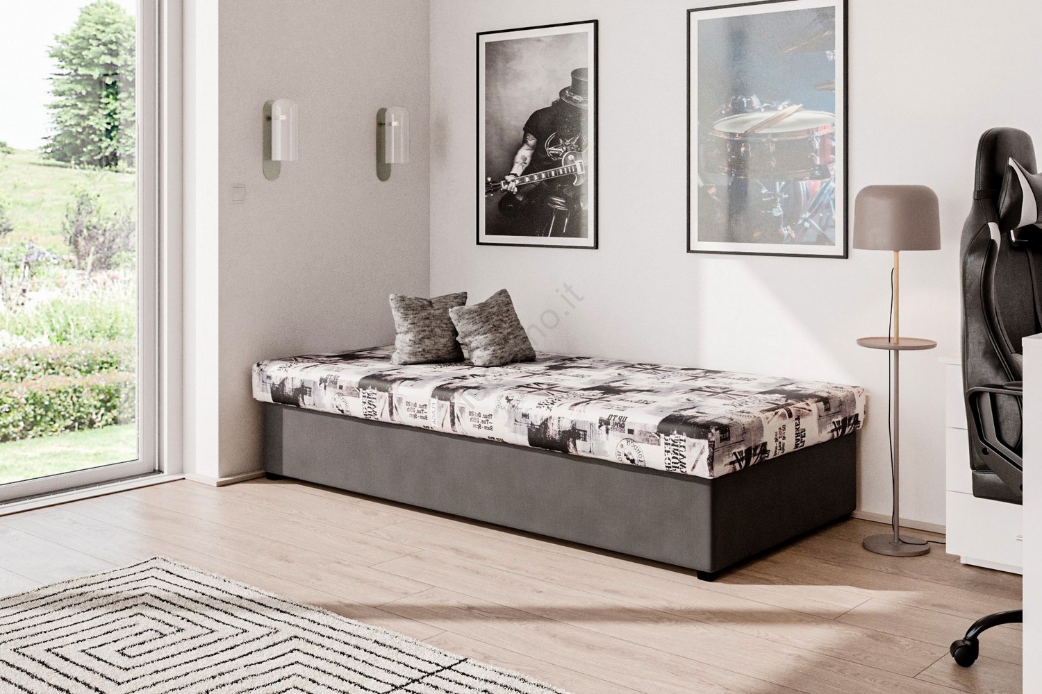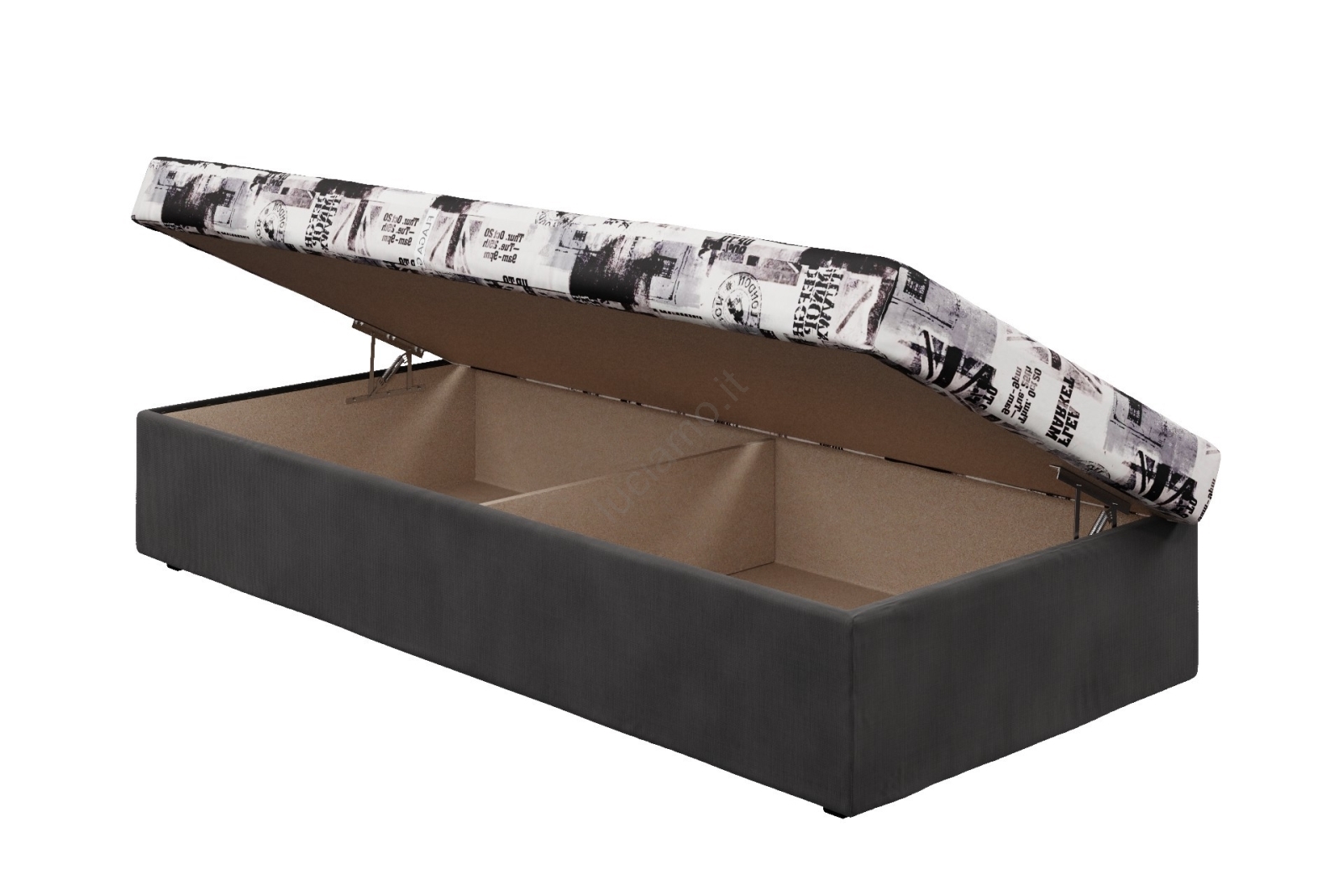 Letto contenitore NOE 90x200 con materasso a molle, grigio/nero