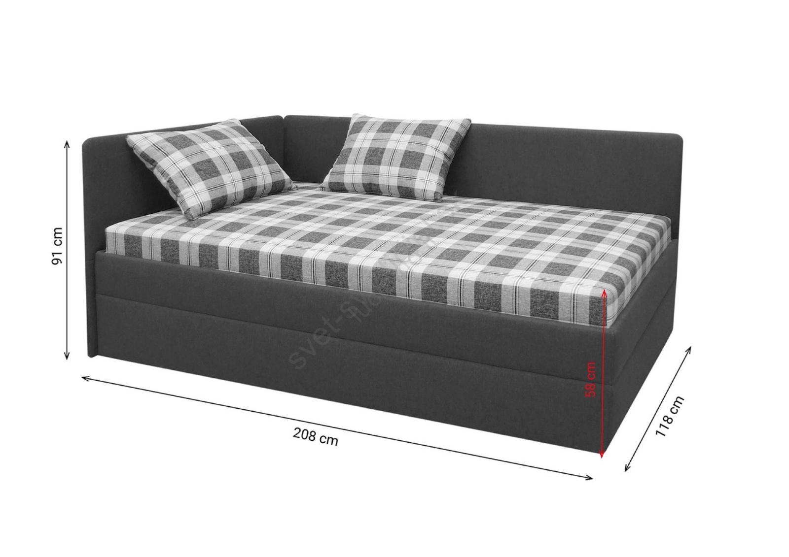 Letto imbottito ARLY 110x200 cm con testiera universale L/P, antracite/bianco