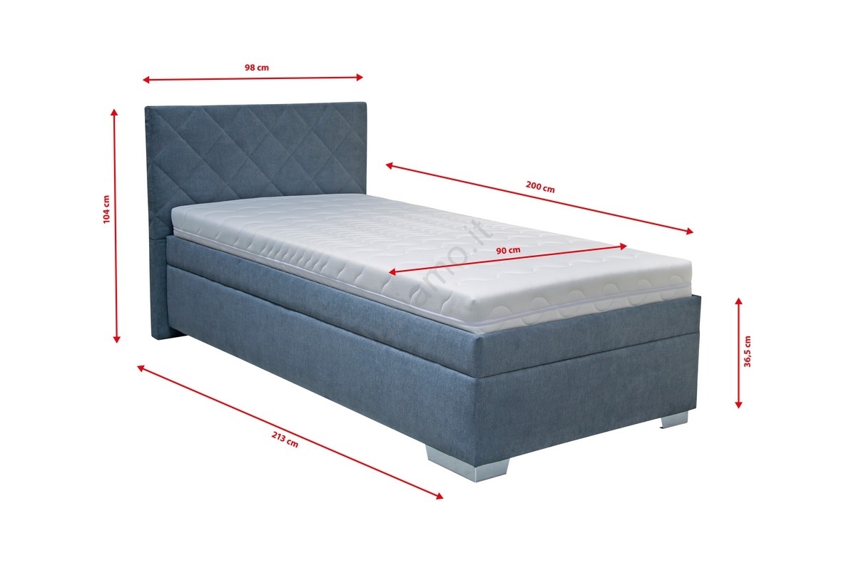 Letto imbottito LANA 90x200 cm con contenitore e materasso, blu