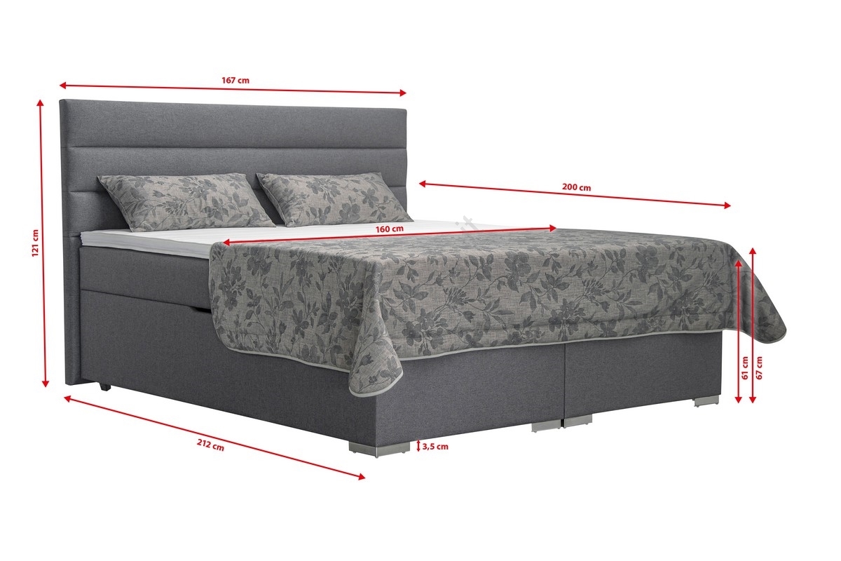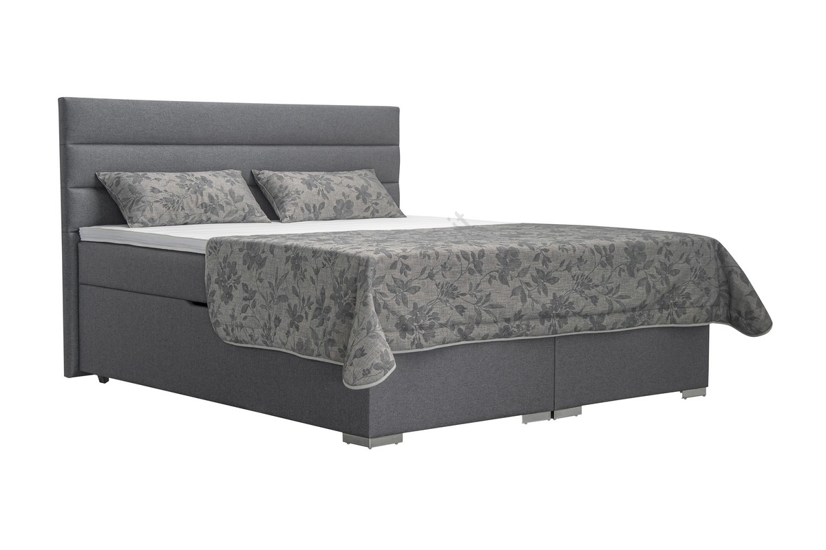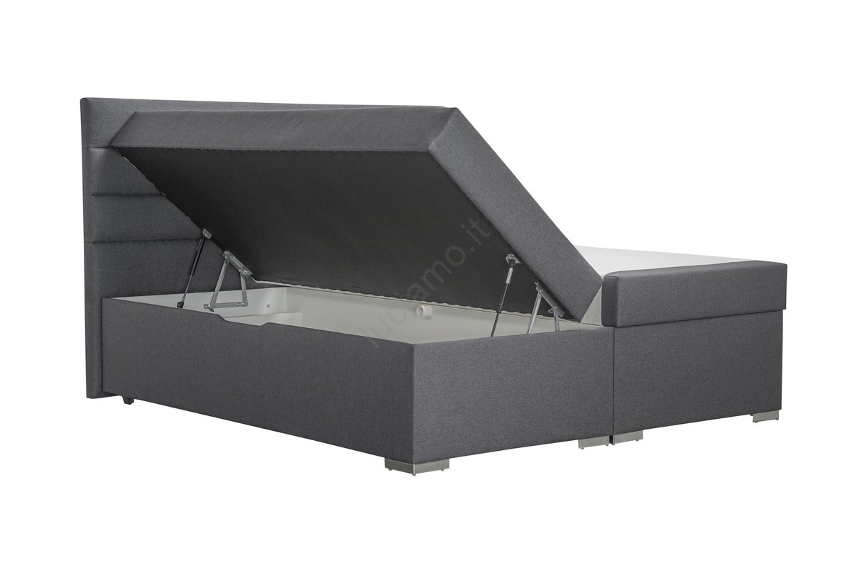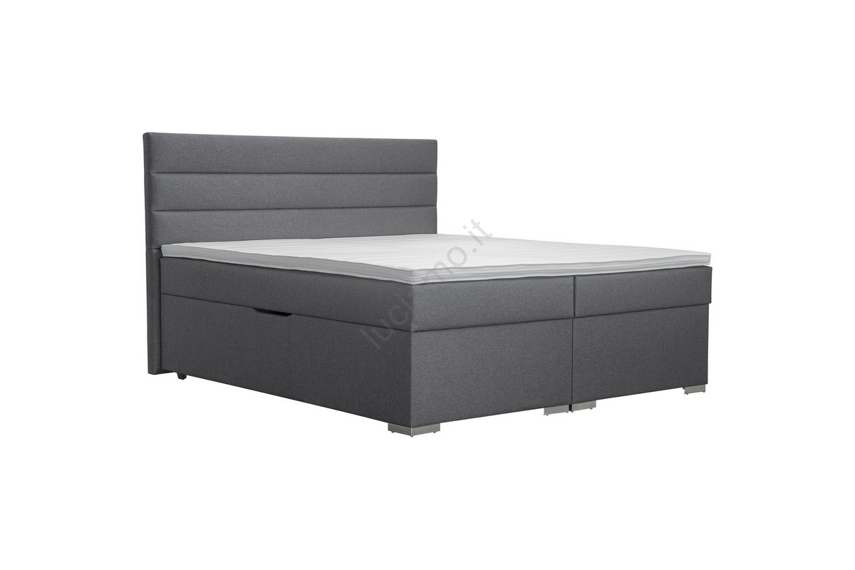 Letto imbottito con contenitore e materassi con topper NEW BOLERO 160x200 cm grigio