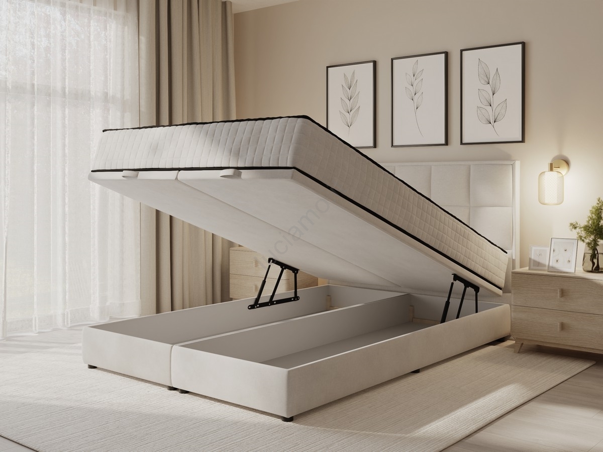 • Letto imbottito con materassi e contenitore GINA 140x200 cm beige