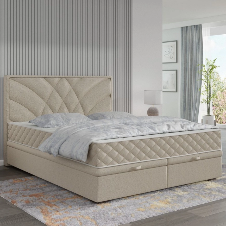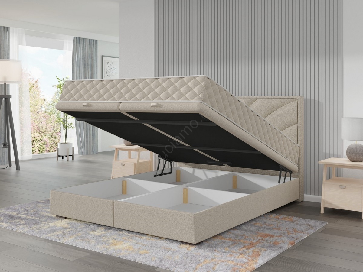 Letto imbottito GINA 160x200 cm con materassi e vano contenitore, beige