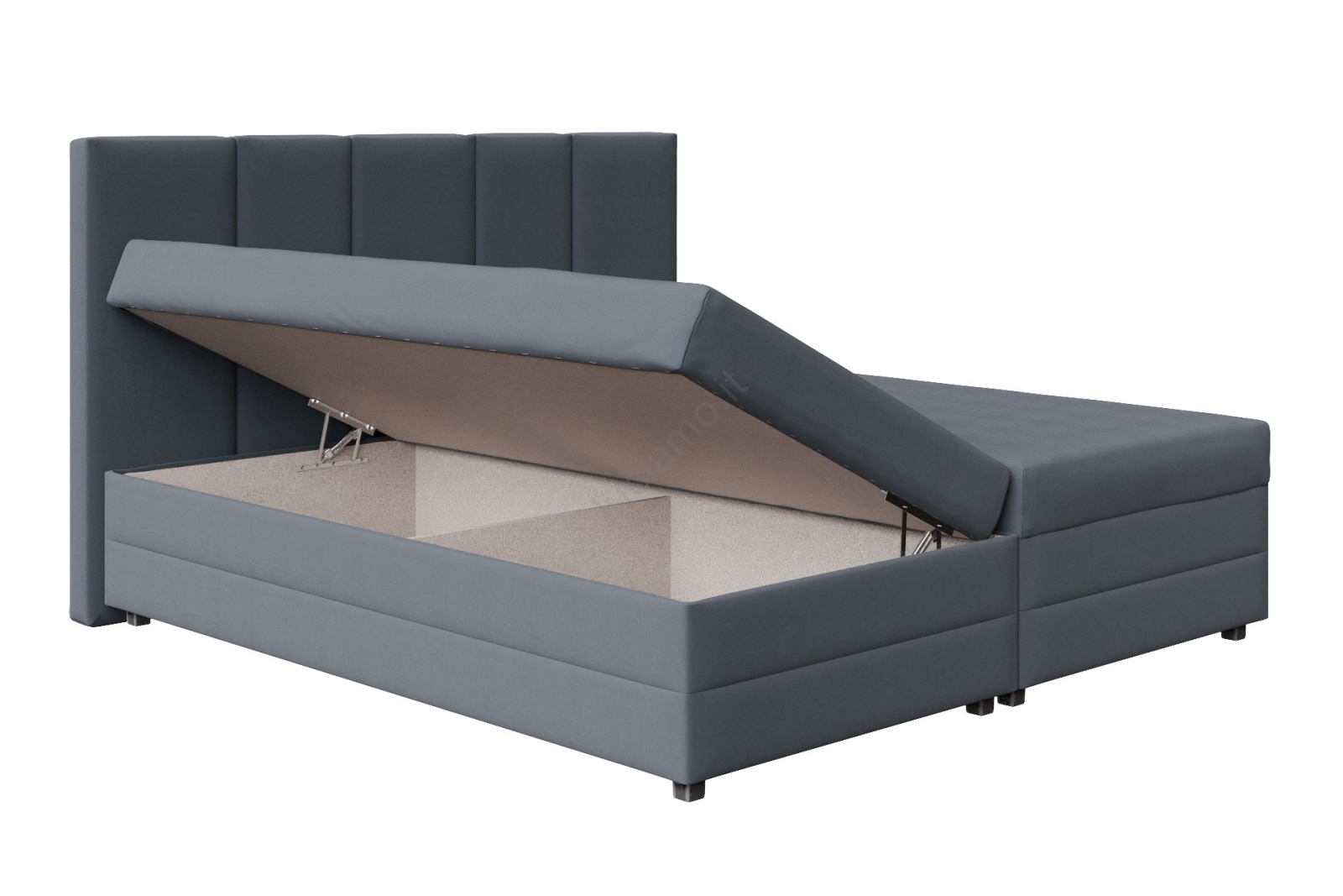 • Letto imbottito ISABEL 160x200 con materasso a molle e vano contenitore, grigio