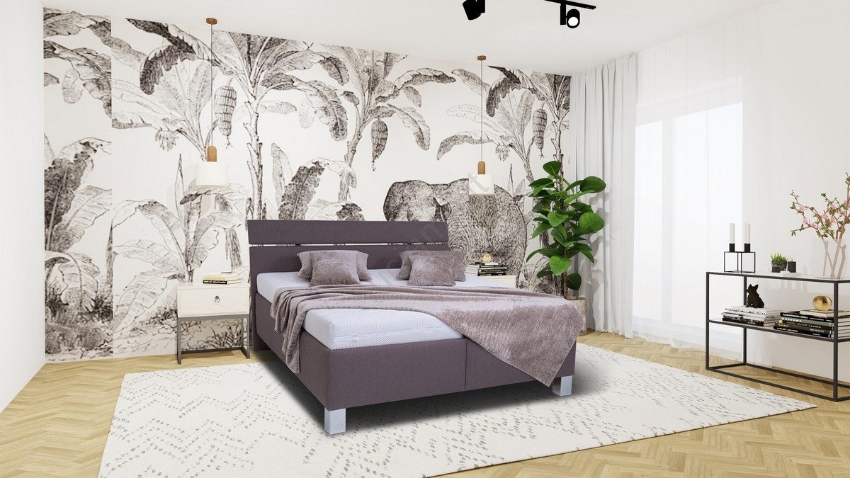 • Letto imbottito ALIS 180x200 cm con materasso e contenitore, grigio chiaro