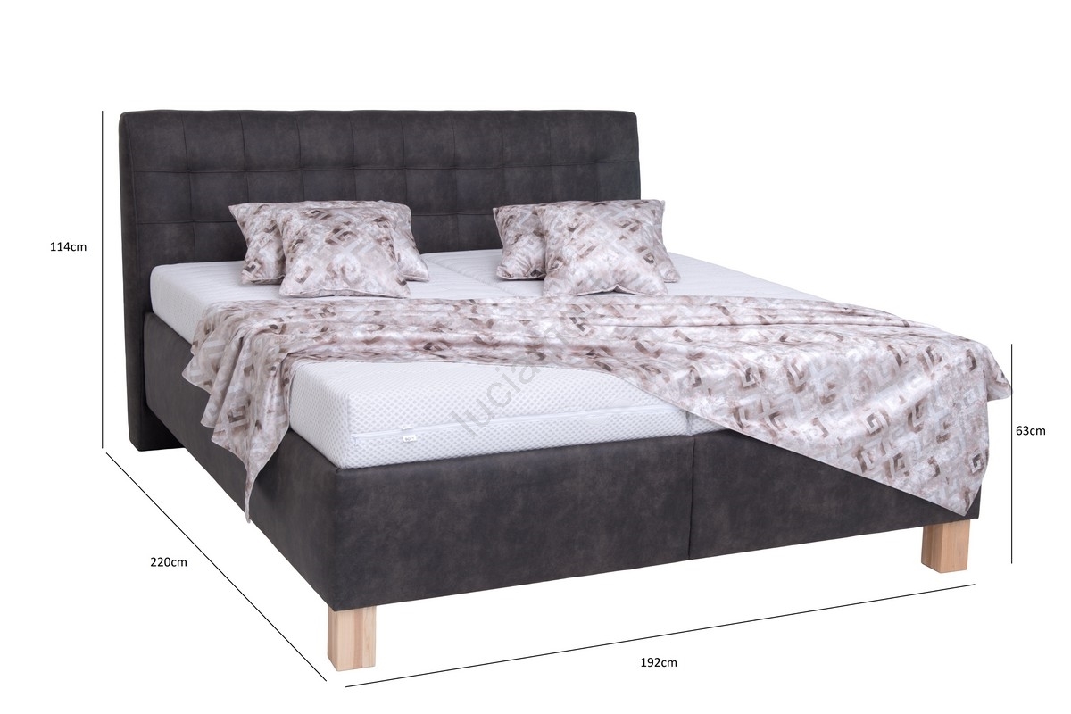 • Letto imbottito VIOLET 180x200 cm con materasso e contenitore grigio scuro