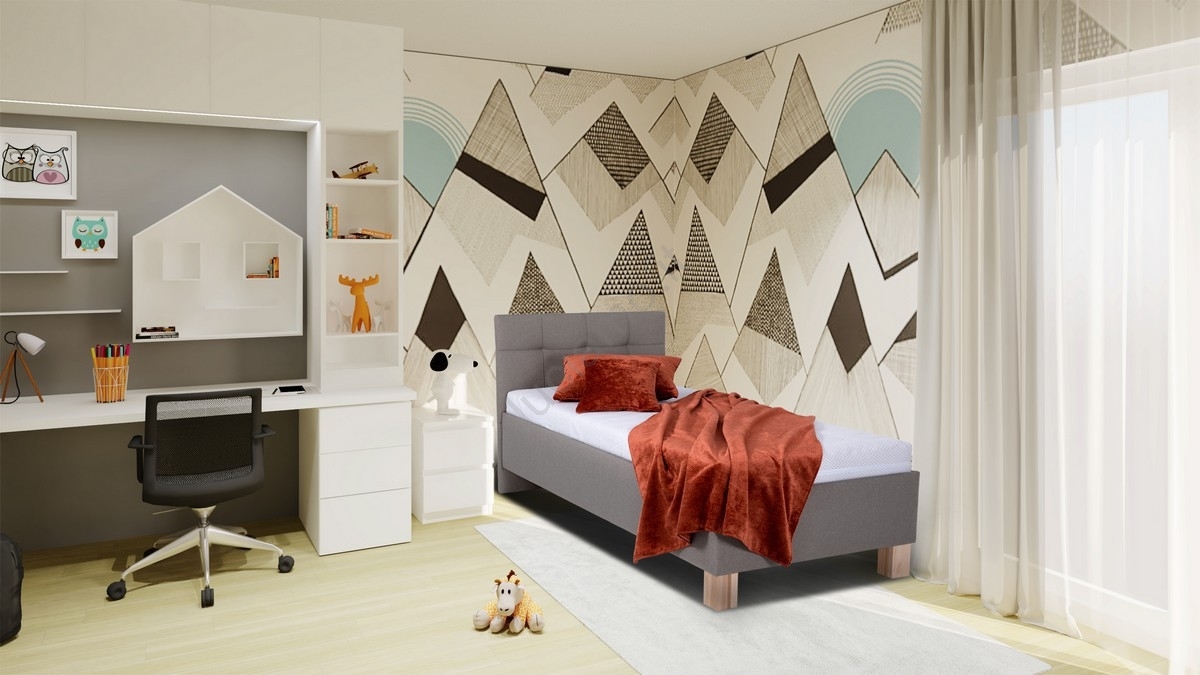 • Letto imbottito con contenitore MARIA ONE 90x200 cm, senza materasso, grigio