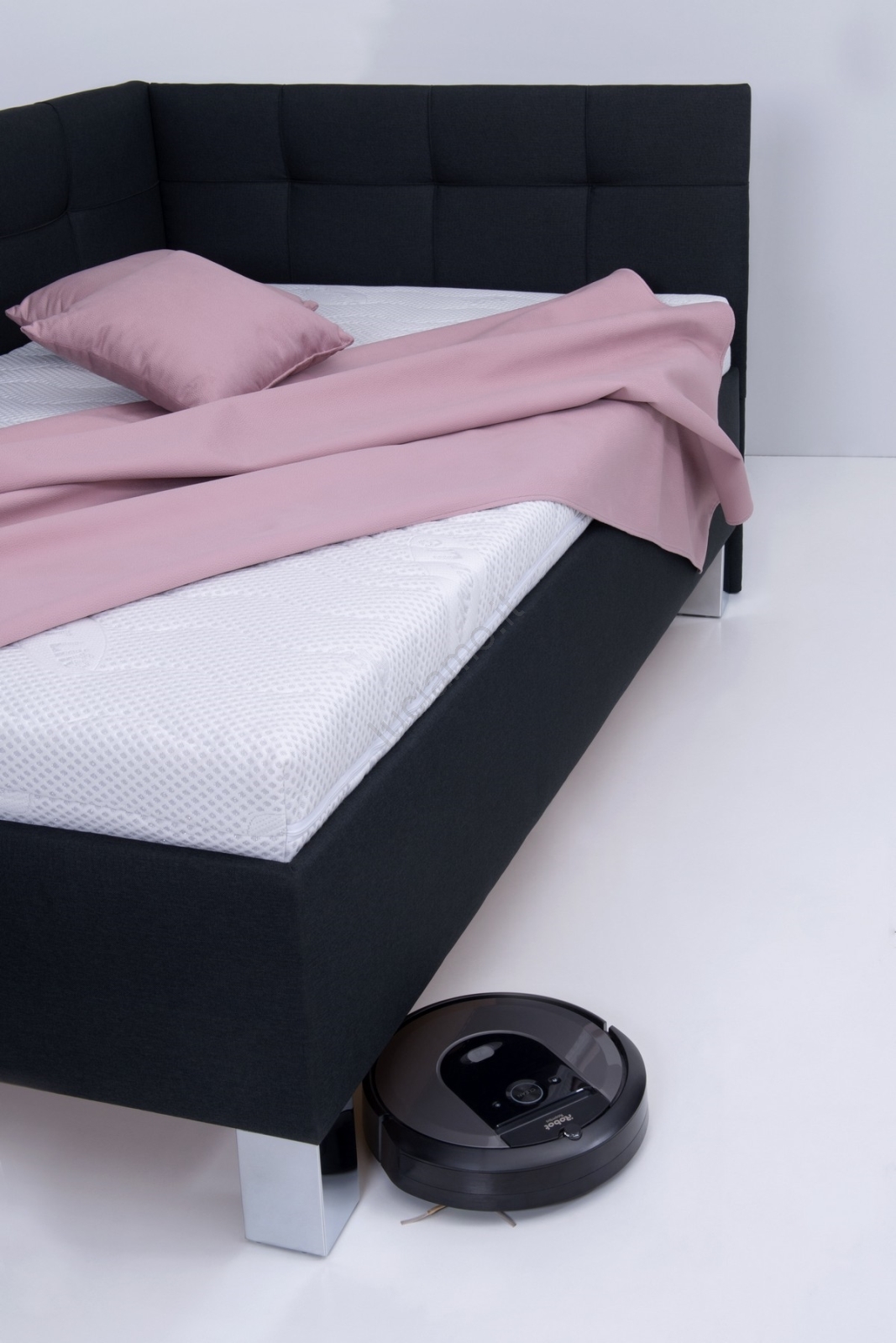 • Gambe stabili e dal design curato, alte 15 cm e in cromo, non solo valorizzano l'aspetto moderno del letto, ma consentono una pulizia semplice anche con l'ausilio di un robot aspirapolvere.