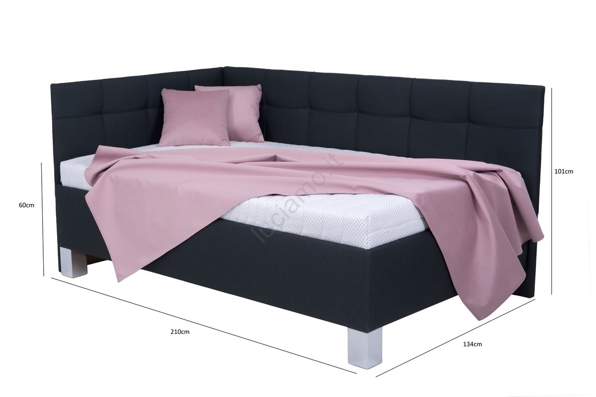 • Letto imbottito MARIA PETITE 120x200 cm con materasso e contenitore, antracite