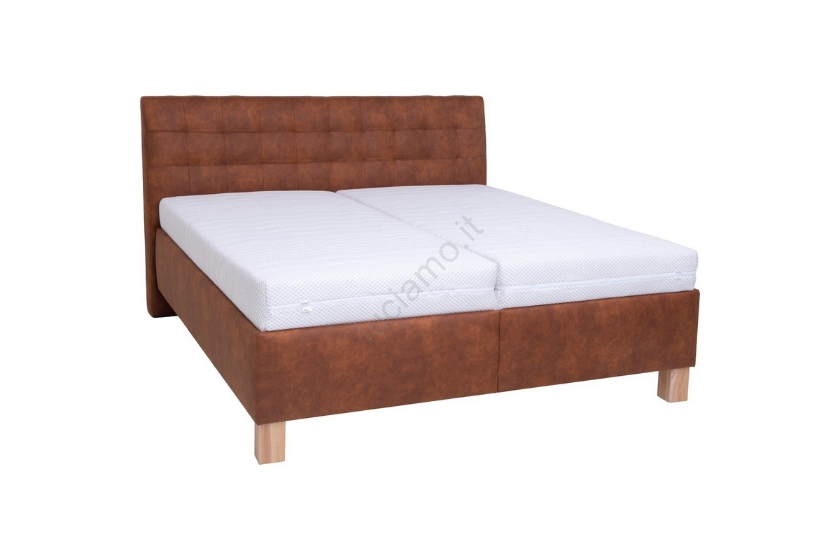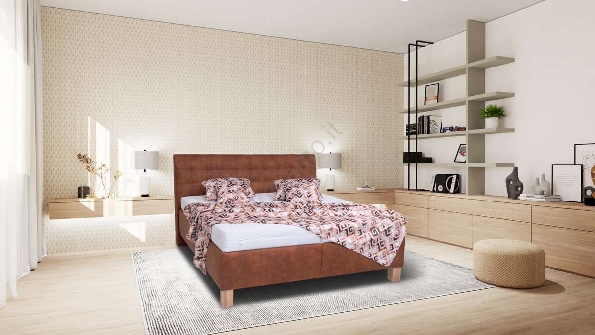 • Letto imbottito VIOLET 160x200 cm con materasso e contenitore, colore cognac