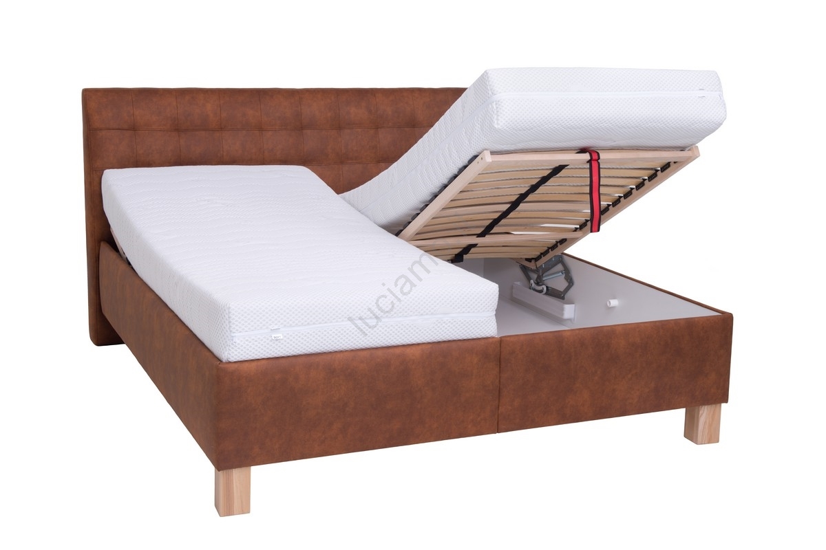 • Letto imbottito con contenitore VIOLET 160x200 cm, senza materasso, marrone cognac