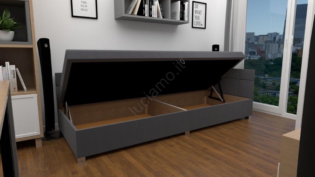 • Offre ampio spazio contenitivo sotto la seduta con pratico meccanismo di sollevamento laterale, ideale per riporre la biancheria da letto.