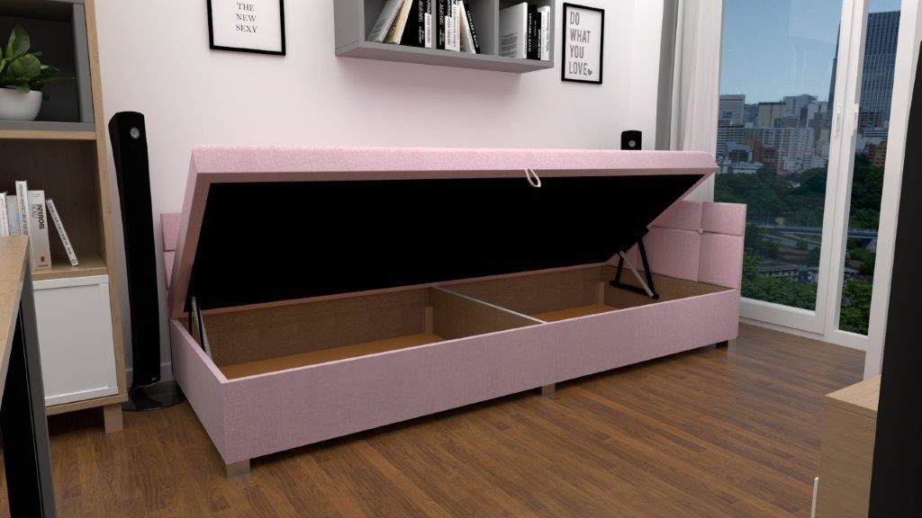 Letto imbottito con testiera universale e vano contenitore AMSTERDAM 90x200 cm rosa