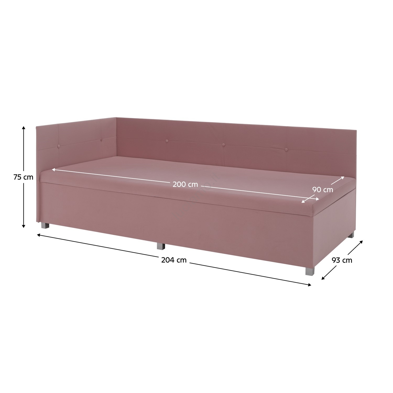 • Letto imbottito con testiera universale e vano contenitore AMSTERDAM 90x200 cm rosa