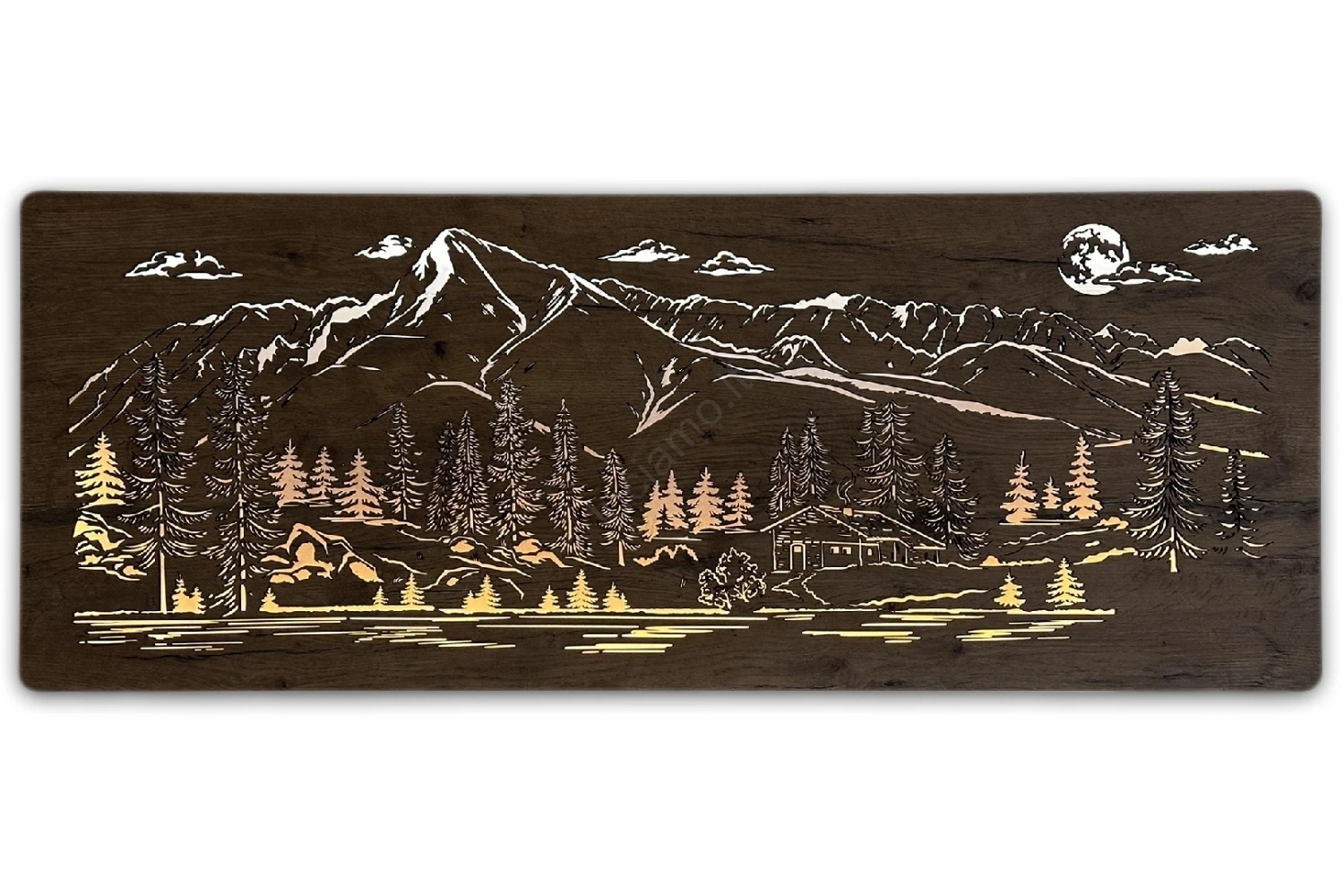 Li-Go 23521/OVL/DUB3 - Decorazione da parete dimmerabile a LED LED/10W/5V 30000 mAh 130x50 cm rovere/Baita in montagna